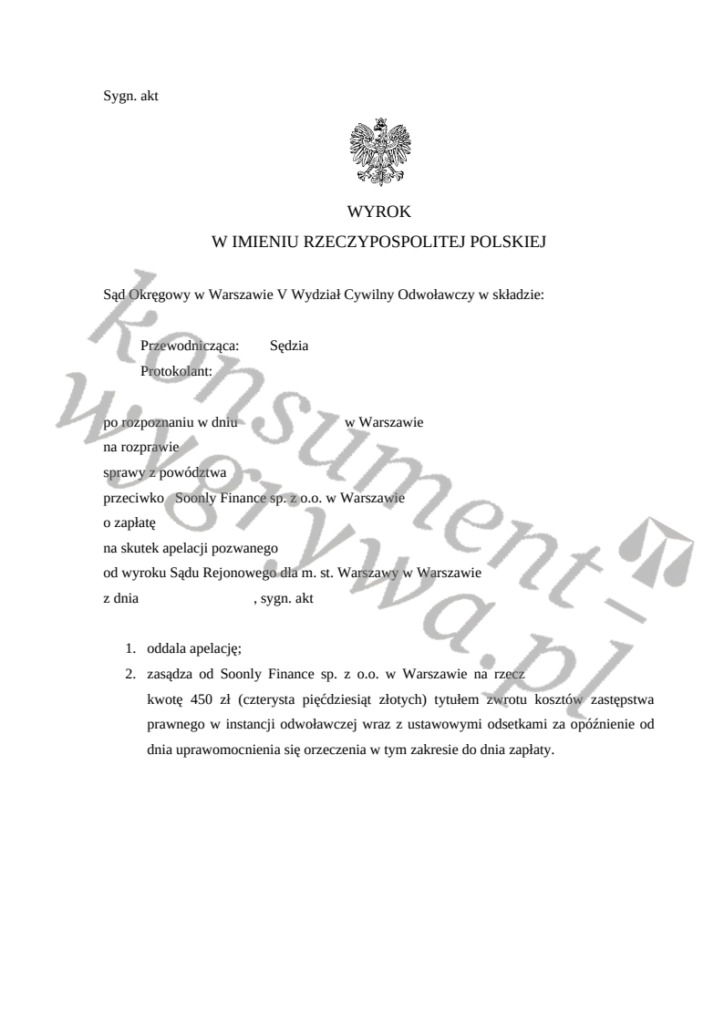 PRZECIWNIK PROCESOWY: Soonly Finance Sp. z o.o.